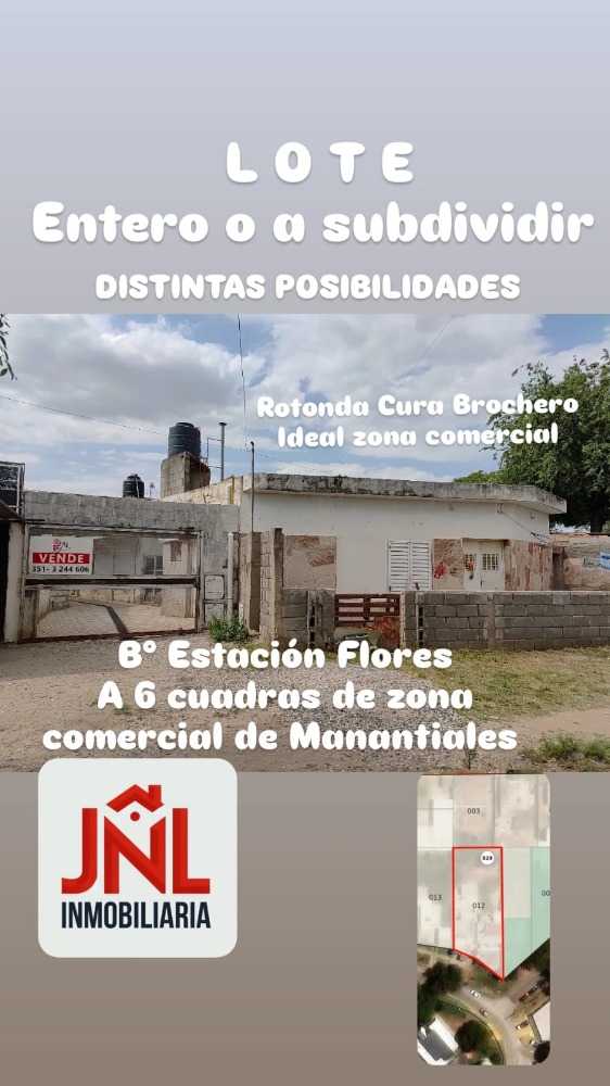 OPORTUNIDAD COMERCIAL. Lote de 935 m2 se vende el total o subdividido. Ubicado en calle Estocolmo 4660 sobre la rotonda Cura Brochero, Bº Estación Flores a 3 cuadras de Av Ansenuza y a 6 cuadras de la zona comercial de Manantiales.