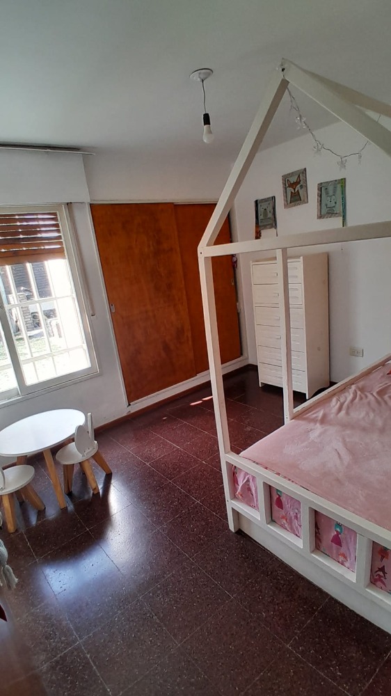 Cuenta con 3 dormitorios, living-comedor, cocina separada con un pasa platos, amplio espacio con una biblioteca colgante y hogar.